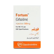 Fortum (500mg) 1 Vial Injection contains Ceftazidime, a third-generation cephalosporin antibiotic used to treat a wide range of bacterial infections. It works by stopping the growth of harmful bacteria, making it effective in treating severe infections that do not respond to other antibiotics.