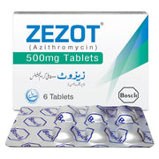 Zezot 500mg contains Azithromycin 500mg, a broad-spectrum macrolide antibiotic that treats bacterial infections by stopping bacterial growth. It is effective for respiratory tract, throat, skin, ear, urinary tract, and sexually transmitted infections. Once-daily dosing ensures convenience and adherence.
